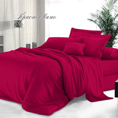 Комплект постельного белья "Sateen De Luxe" 1,5 спальный гладкокрашеный, нав олочка 50х70 см, Красное вино