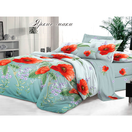Комплект постельного белья Белла вита Премиум 1,5 спальный, яркие маки