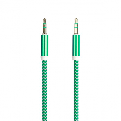 AUX кабель 3.5-3.5 мм (M-M), 1 м, зеленый, нейлоновая оплетка, (A-35-35 green)/100