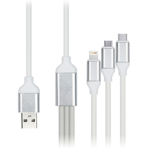 Дата-кабель Smartbuy USB - 3 в 1 Micro+C+8pin, резин, толст. 1.2 м, до 3А белый (iK-312QBOMB white)