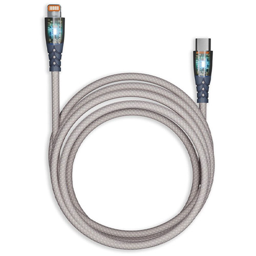 Кабель для зарядки и передачи, прозрачн.наконечники TYPE C - LIGHTNING серый,3А,нейл.,1 м, Smartbuy