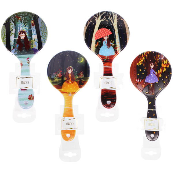 Расческа массажная круглая "ЭФФЛОДИ", микс 4 дизайна, 22*10см (PVC подвес)