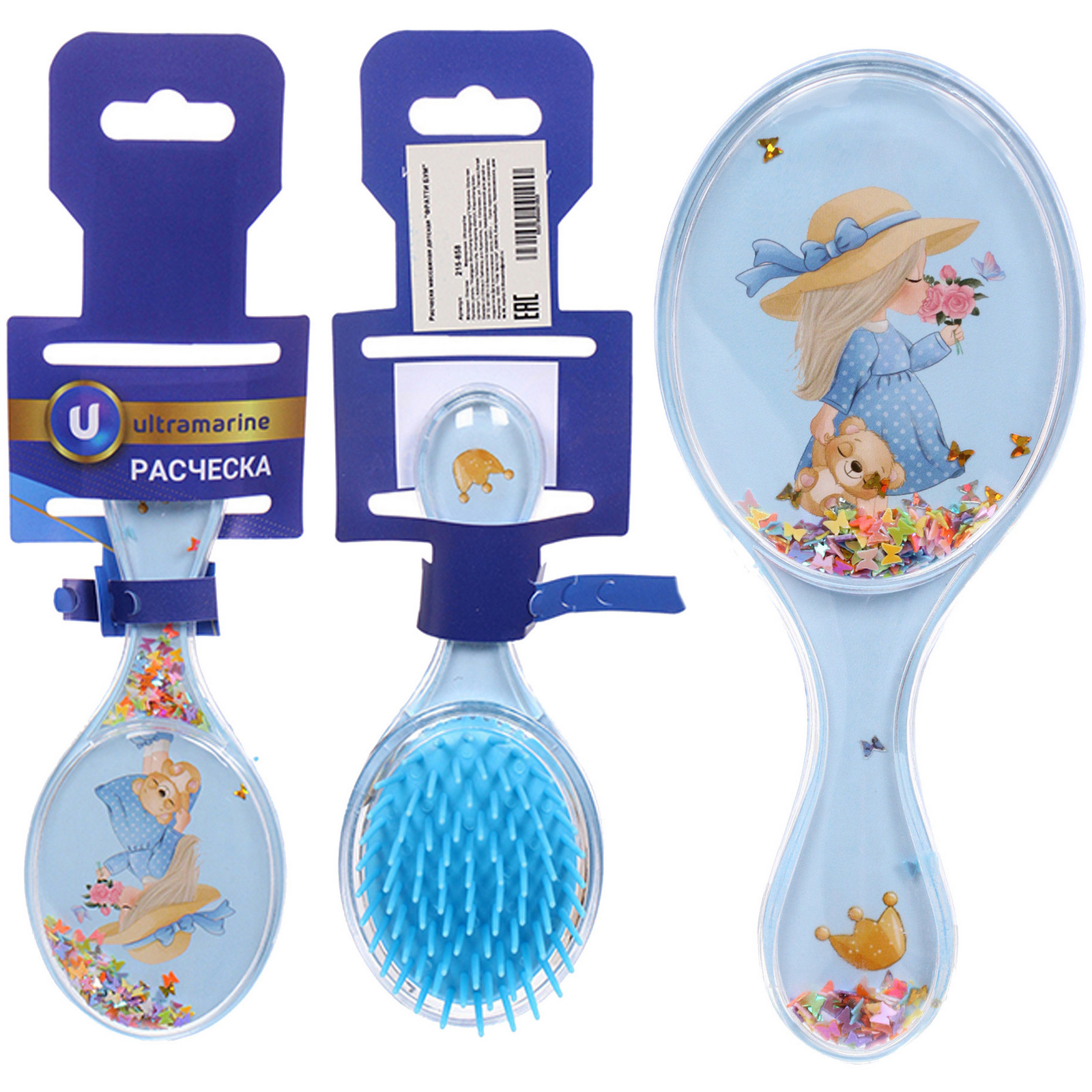 Расческа массажная детская "ФРАТТИ БУМ", малышка Натали, форма овал, 13*6см (блистер Ультрамарин)
