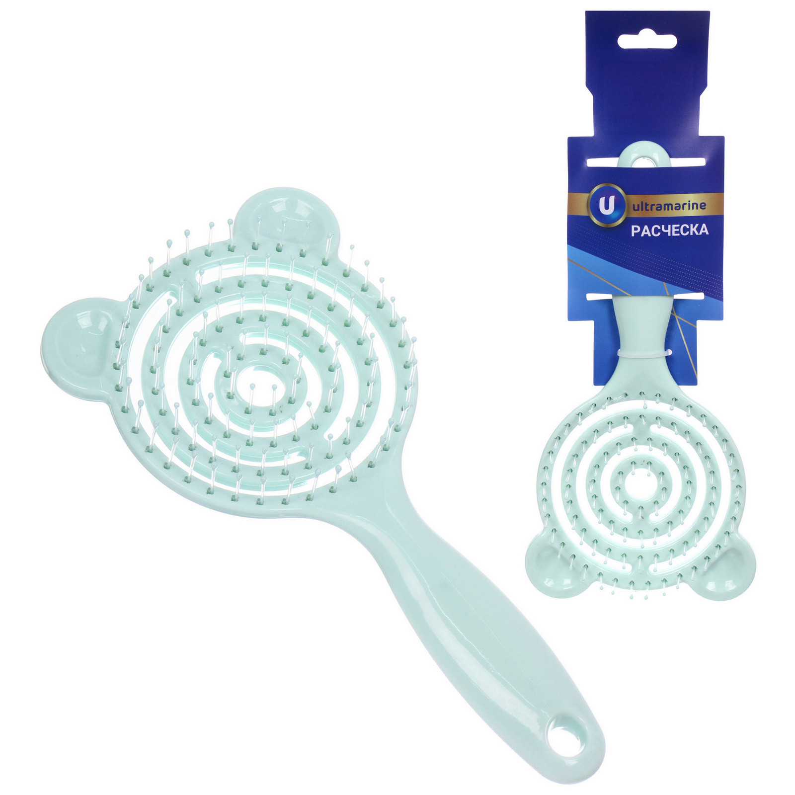 Расческа массажная продувная с ушками "Ушастик", цвет салатовый, 9*20см (Ultramarine блистер)