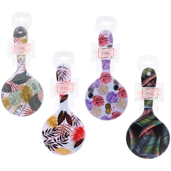 Расческа массажная круглая "ТРОПИКИ", микс 4 дизайна, 22*10см (PVC подвес)