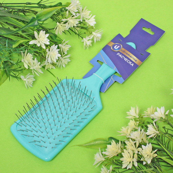 Расческа массажная "Valeria", прямоугольная, цвет бирюзовый, 24*8 22,5*7см (блистер Ultramarine)