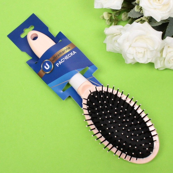Расческа массажная "Avenue", овальная, цвет нежно-розовый, 6,5*24 см (блистер Ultramarine)