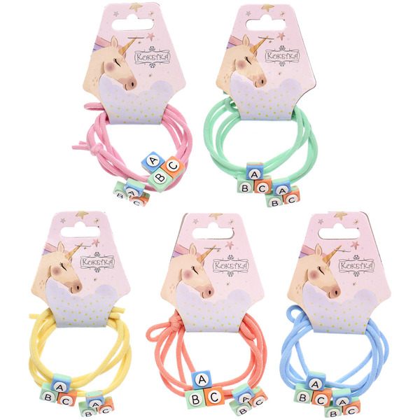 Резинки для волос 2шт "МИМИШКА", авс, микс 5 цветов, d-5,5см (подвес Единорог)