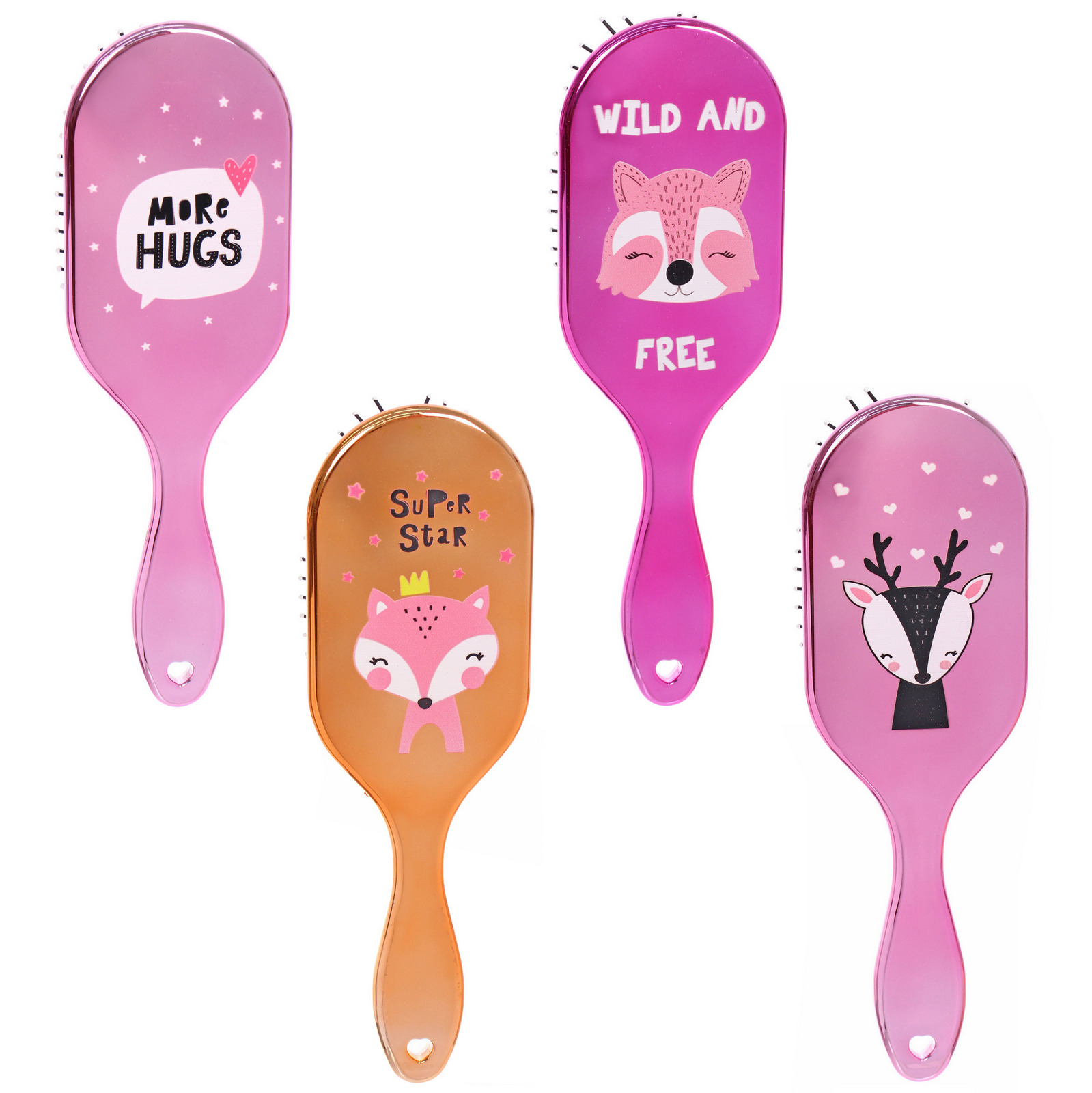 Расческа массажная зеркальная "Animals", лисички, микс 4 цвета, 7,5*23 см (блистер Ultramarine)