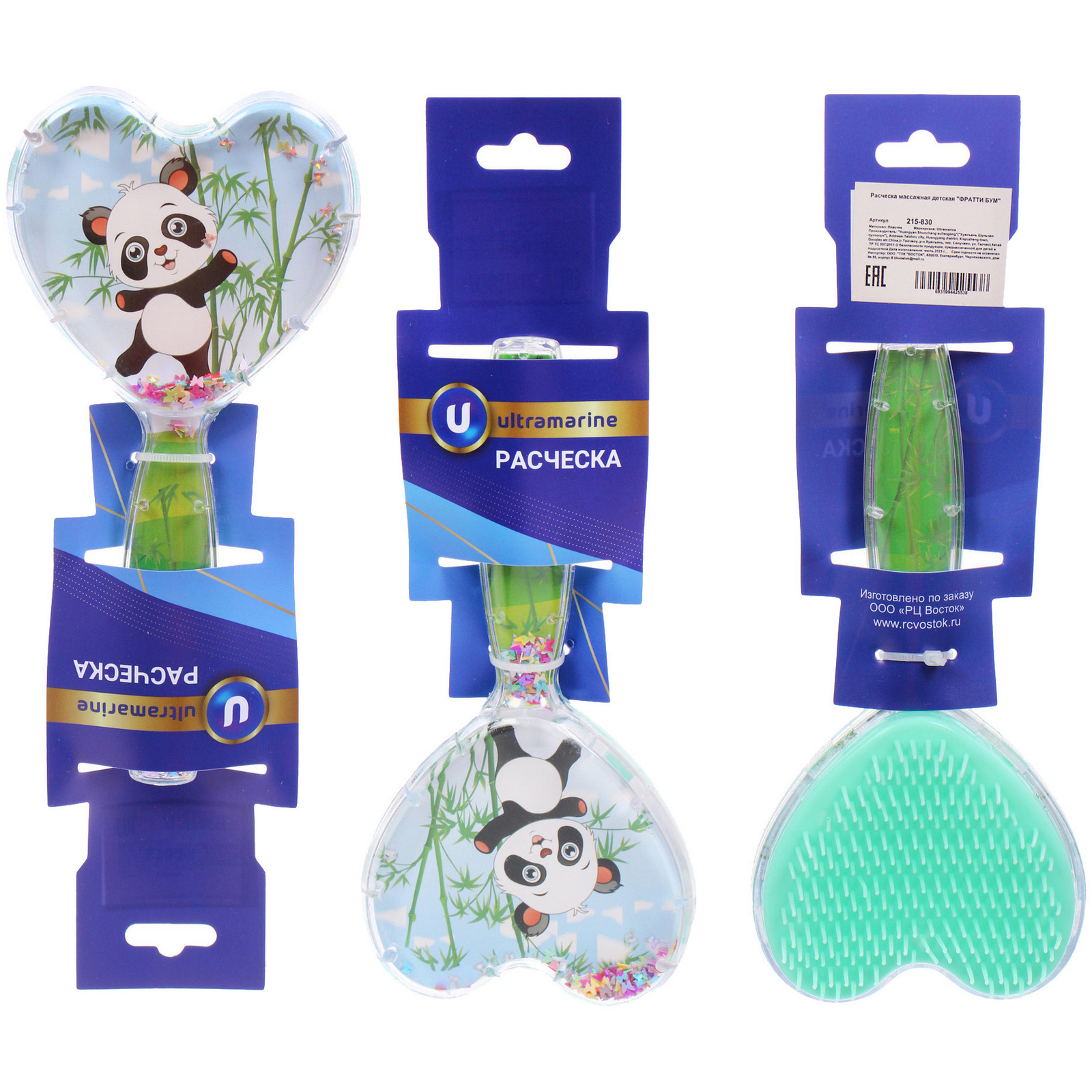 Расческа массажная детская "ФРАТТИ БУМ", панда Космо, форма сердце, 17,5*8см (блистер Ультрамарин)