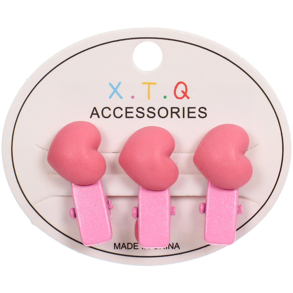 Зажимы для волос детские 3шт "РОЗОВОЕ ОБЛАКО", розовые сердечки, 2.5см (блистер и пакет с подвесом)