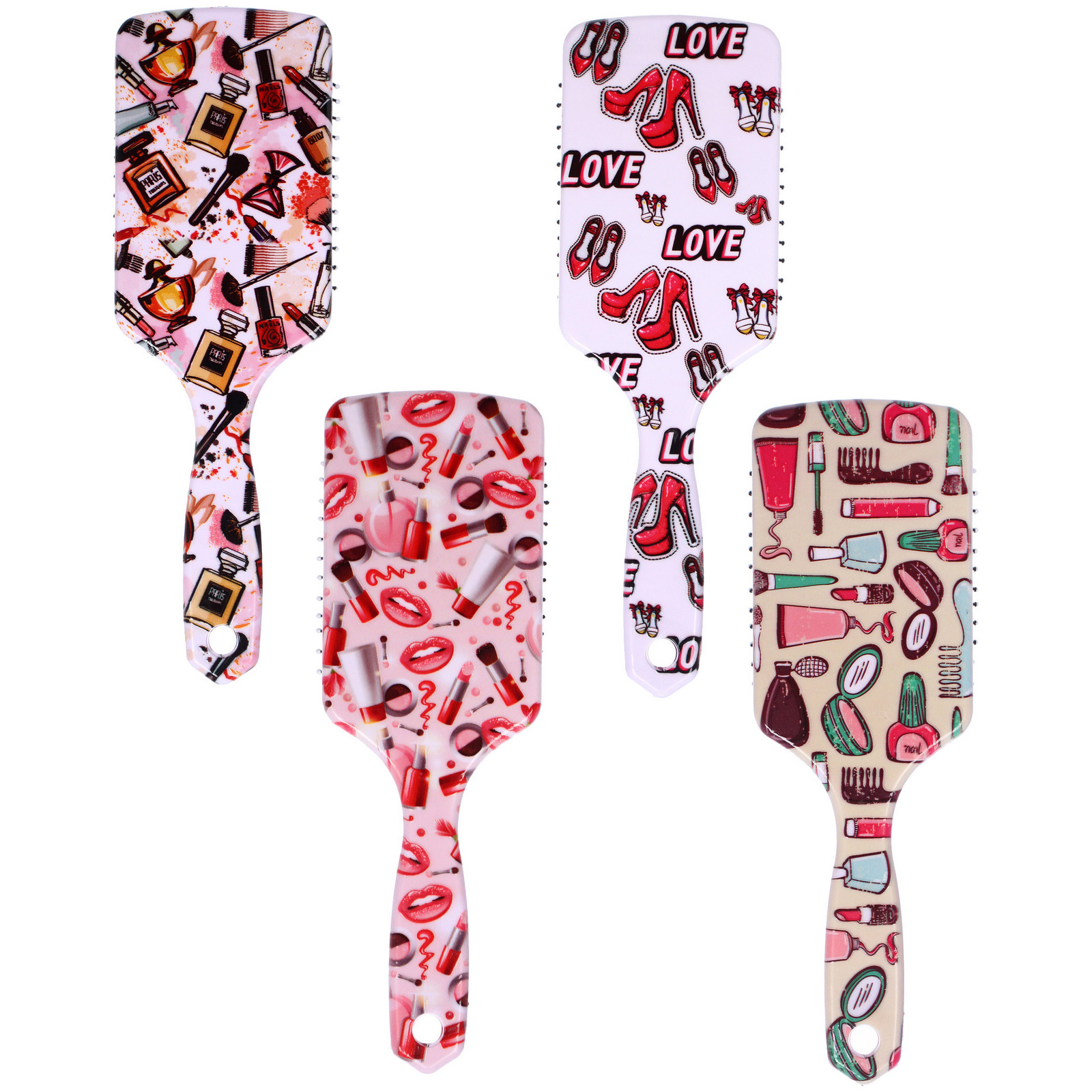 Расческа массажная прямоугольная форма "КОЛЛЕКЦИЯ ИМАНИ - МАКИТА", микс 4 дизайна, 24*7,5см (PVC упаковка)