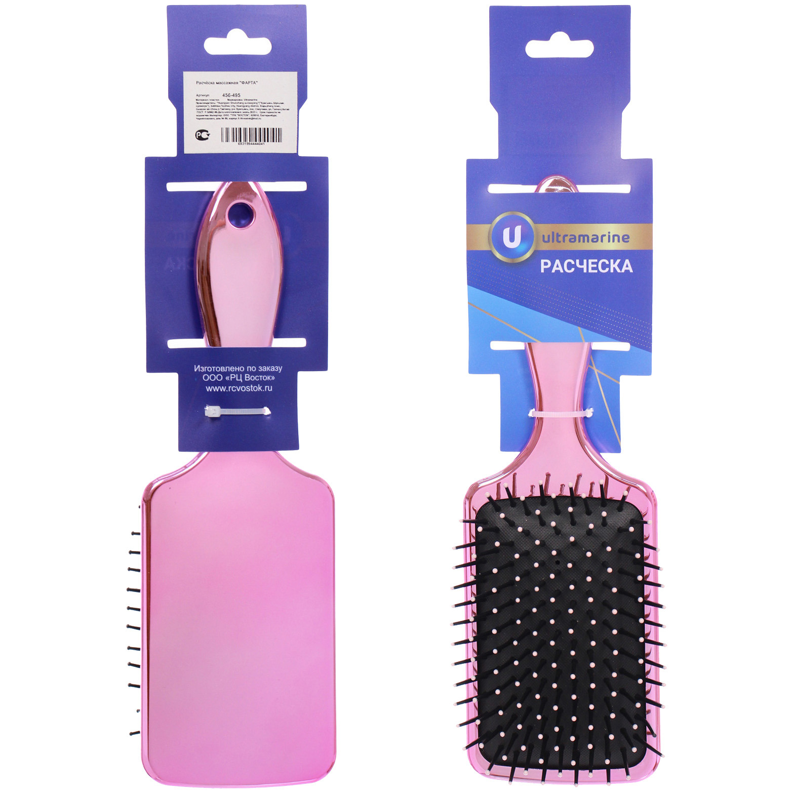 Расчёска массажная зеркальная прямоугольная форма "ФАРТА", цвет розовое золото, 22*7см (Блистер Ultramarin)