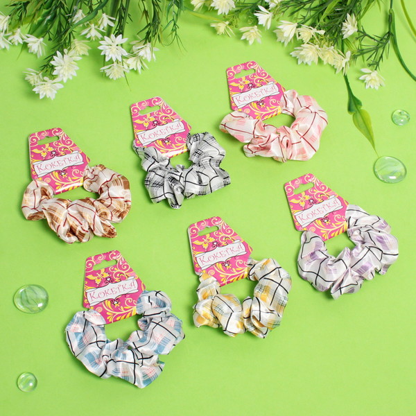 Резинка для волос "Collection School", принт клетка, микс 6 цветов, d-10см