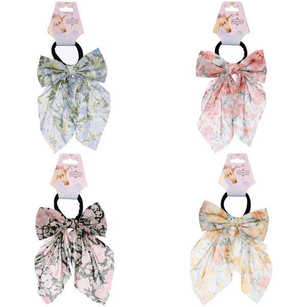 Резинка для волос "ПЕРСЕЯ", пионы, микс 4 цвета, d-5см/11*17см (подвес Кокетка Единорог)