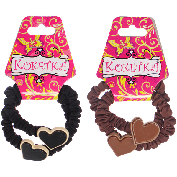 Резинки для волос 2шт "ФАНТЕЭГРО", сердечки, цвет черный, молочный и коричневый, d-5.5см (Кокетка)