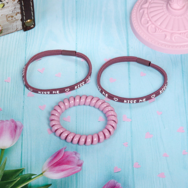 Резинки для волос 3шт "Кокетка", цвет розовый, d-5,5см