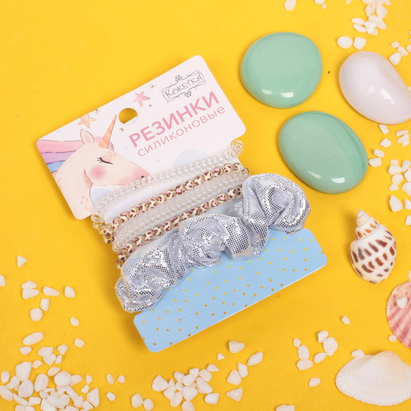 Резинки для волос 5шт "The Star Collection", цвет серебро, d-6см (блистер Единорог)