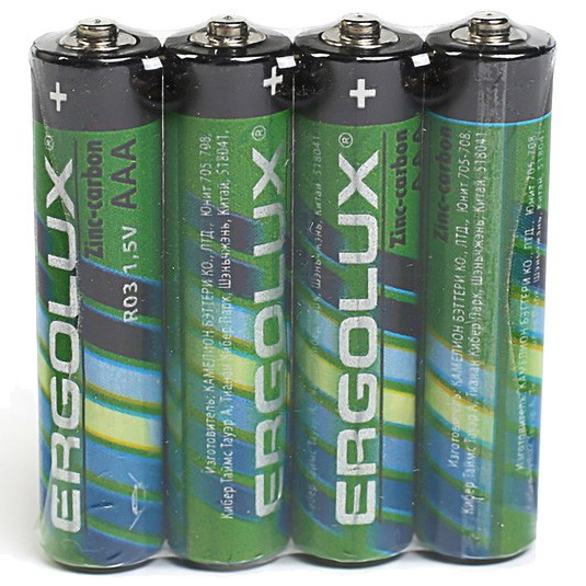 Батарейка солевая Ergolux R03, тип ААА (спайка, 4 шт) БК