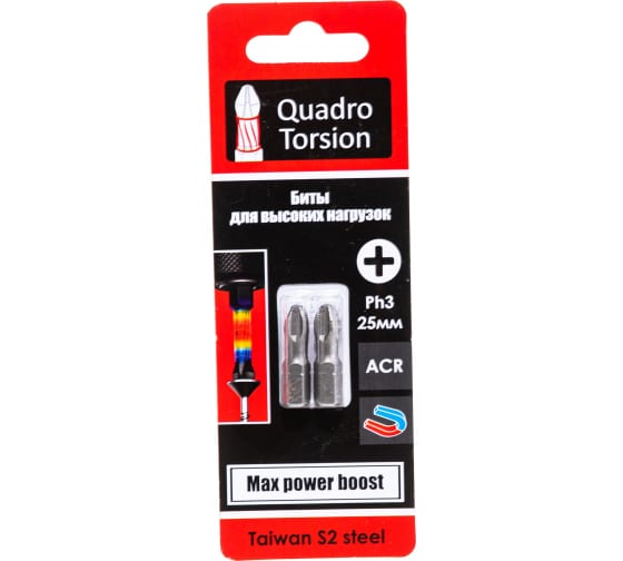 Биты 1/4" "Quadro Torsion" Ph3-25 мм (2 шт/уп)