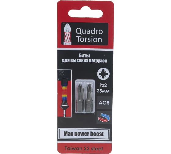Биты 1/4" "Quadro Torsion" Pz2-25 мм (2 шт/уп)