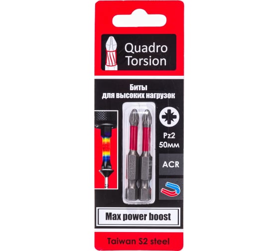 Биты 1/4" "Quadro Torsion" Pz2-50 мм (2 шт/уп)