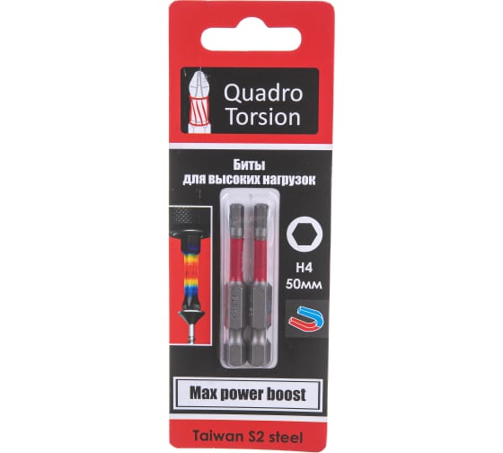 Биты 1/4" "Quadro Torsion" шестигранник 4.0-50 мм (2 шт/уп)
