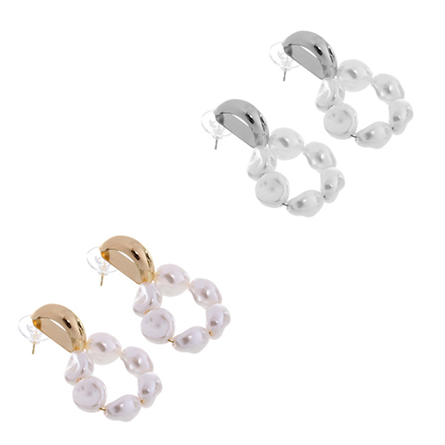 Серьги из гиппоалергенного металла с иск. жемчугом "ПАЛУМНА", цвет золото и серебро, 3*2,5см