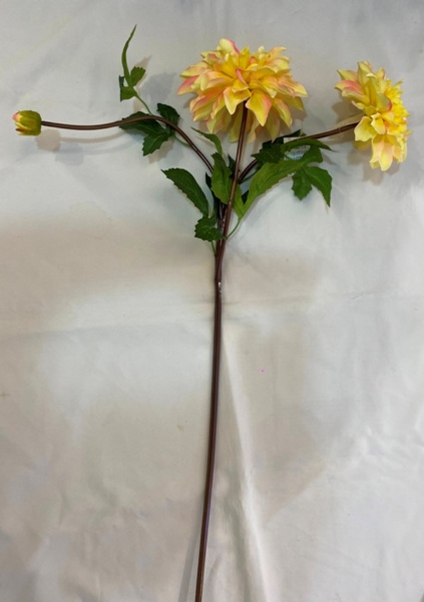 Цветок искусственный "Natur" 72см Георгин 2цветка и бутон желтый