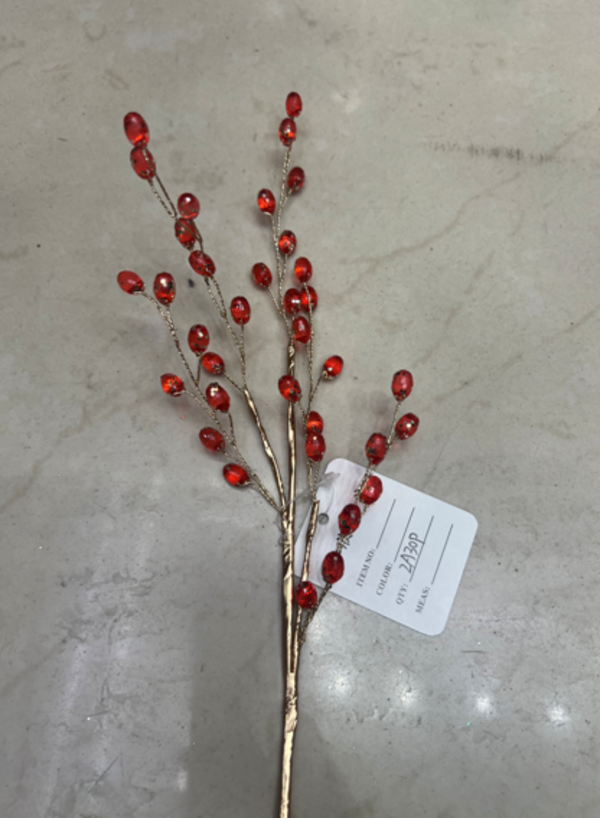 Ветка декоративная "Сияние" 40 см, Красный/Золото
