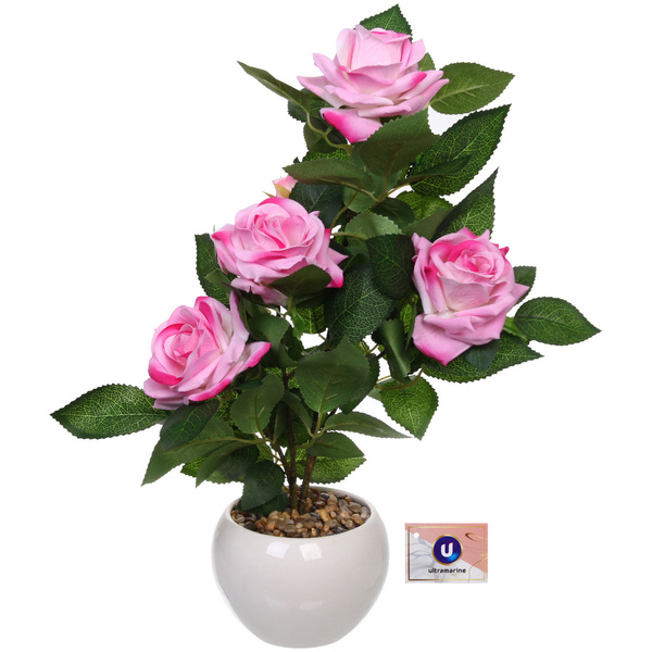 Цветочная композиция "Розовый куст" 42см в горшке, цвет розовый