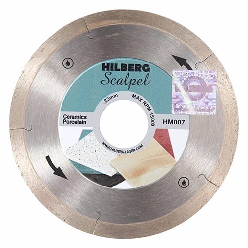 Диск алмазный сплошной ультратонкий Hilberg Scalpel Диаметр: 105; Посадка: 22.23; Высота кромки: 6; Толщина кромки: 0.8; Мокрый рез.