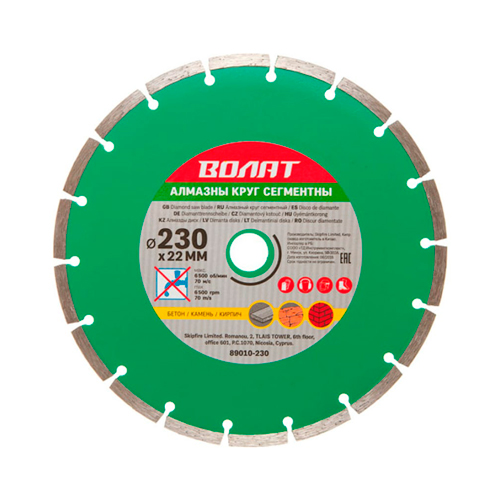Круг алмазный ВОЛАТ 230 х 22 мм, универсальный, сегментированный, сухая резка