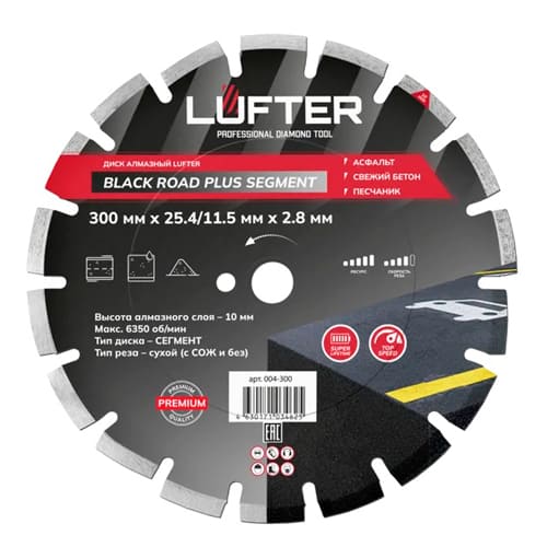 Диск алмазный lufter black road plus segment 300мм х 25.4/11.5 x 2.8мм х 10мм асфальт,свежий бетон 004-300
