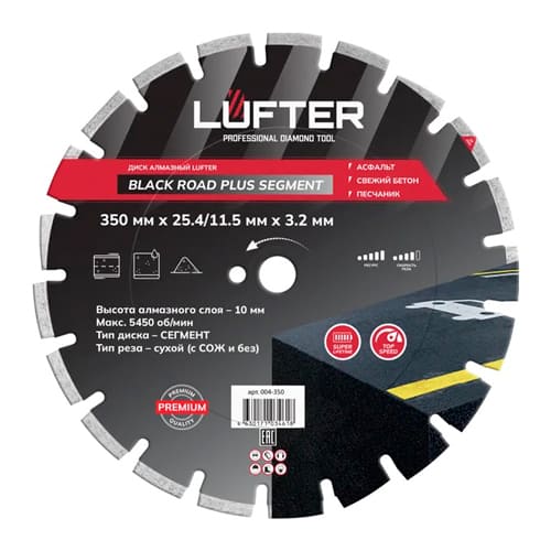 Диск алмазный lufter black road plus segment 350мм х 25.4/11.5 x 3.2мм х 10мм асфальт,свежий бетон 004-350