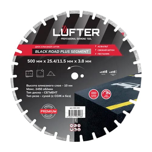Диск алмазный lufter black road plus segment 500мм х 25.4/11.5 x 3.8мм х 10мм асфальт,свежий бетон 004-500