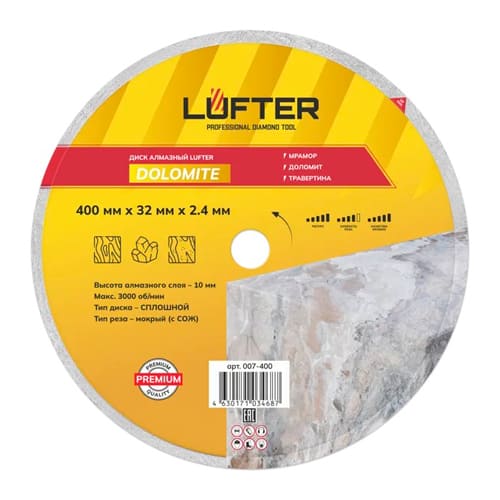 Диск алмазный lufter dolomite 400х32x2.2х10 мм мрамор, доломит, травертина 007-400