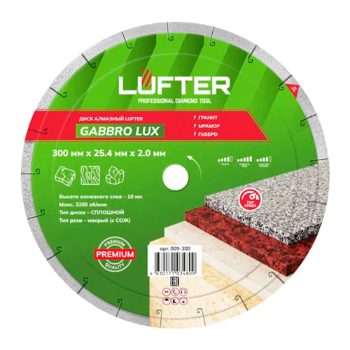 Диск алмазный lufter gabbro lux 300мм х 25.4 x 2.4мм х 8.5мм гранит, мрамор, габбро 009-300