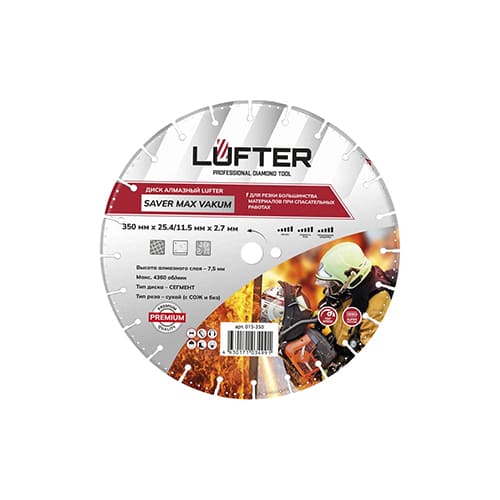 Диск алмазный LUFTER SAVER MAX VAKUM 350мм Х 25,4/20мм для резки большинства материалов при спасате, 015-350