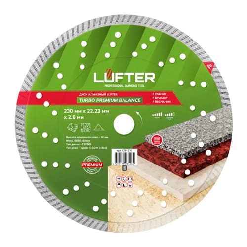 Диск алмазный lufter turbo premium balance 230x2.5х10 мм гранит тип габбро 022-230