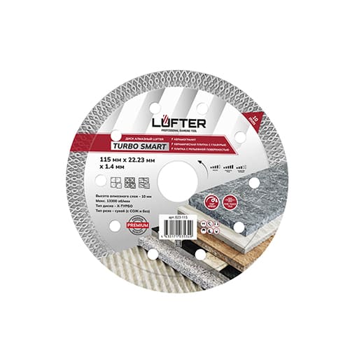 Диск алмазный LUFTER TURBO SMART ТИП-Х 115мм Х 1,4мм Х 10мм твердая керамика, 023-115