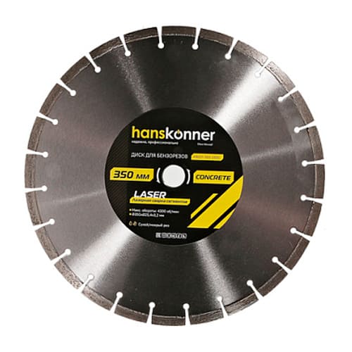Алмазный диск для бензорезов, 350х25,4 LASER CONCRETE, бетон Hanskonner H9021-350-25SC