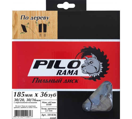 Диск пильный по дереву "Pilorama", 185 мм х 36 зуб х 30/20, 30/16 мм