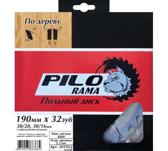 Диск пильный по дереву "Pilorama", 190 мм х 32 зуб х 30/20 мм