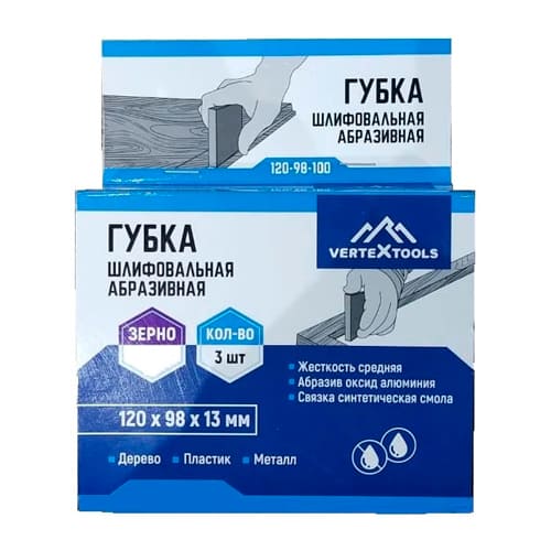 Губка абразивная шлифовальная 120х98х13 мм Р100 3шт, vertextools 120-98-100