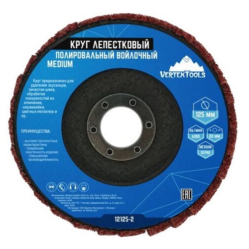 Круг лепестковый полировальный войлочный MEDIUM 125х22 мм, vertextools 12125-2