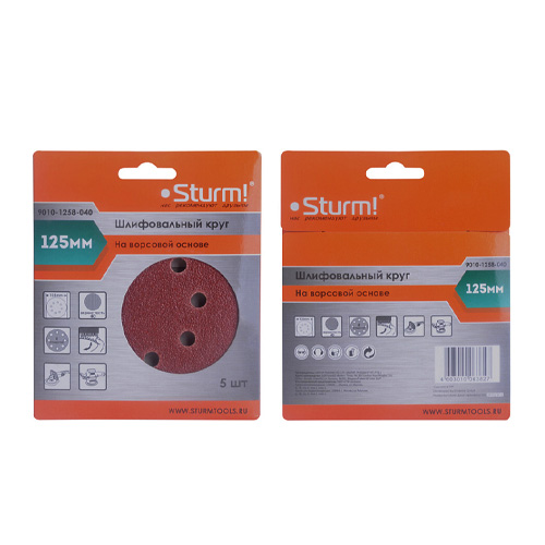 Круг шлифовальный "под липучку"125 мм зерно 40 8 отверстий STURM 9010-1258-040