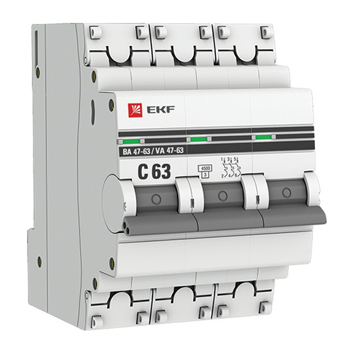 Выключатель автоматич. 3П 63А хар-ка С 4,5кА ВА47-63 ПОД ПЛОМБУ PROxima EKF, 1/