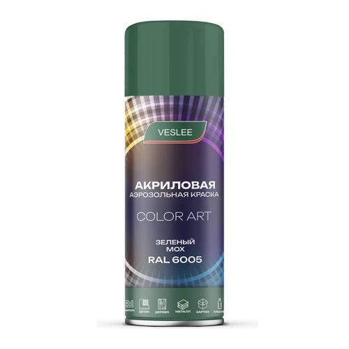 Краска аэрозольная акриловая VESLEE COLOR ART, зелёный мох RAL 6005