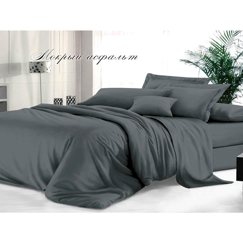 Комплект постельного белья "Sateen De Luxe" евростандарт, гладкокрашеный, Мокрый асфальт